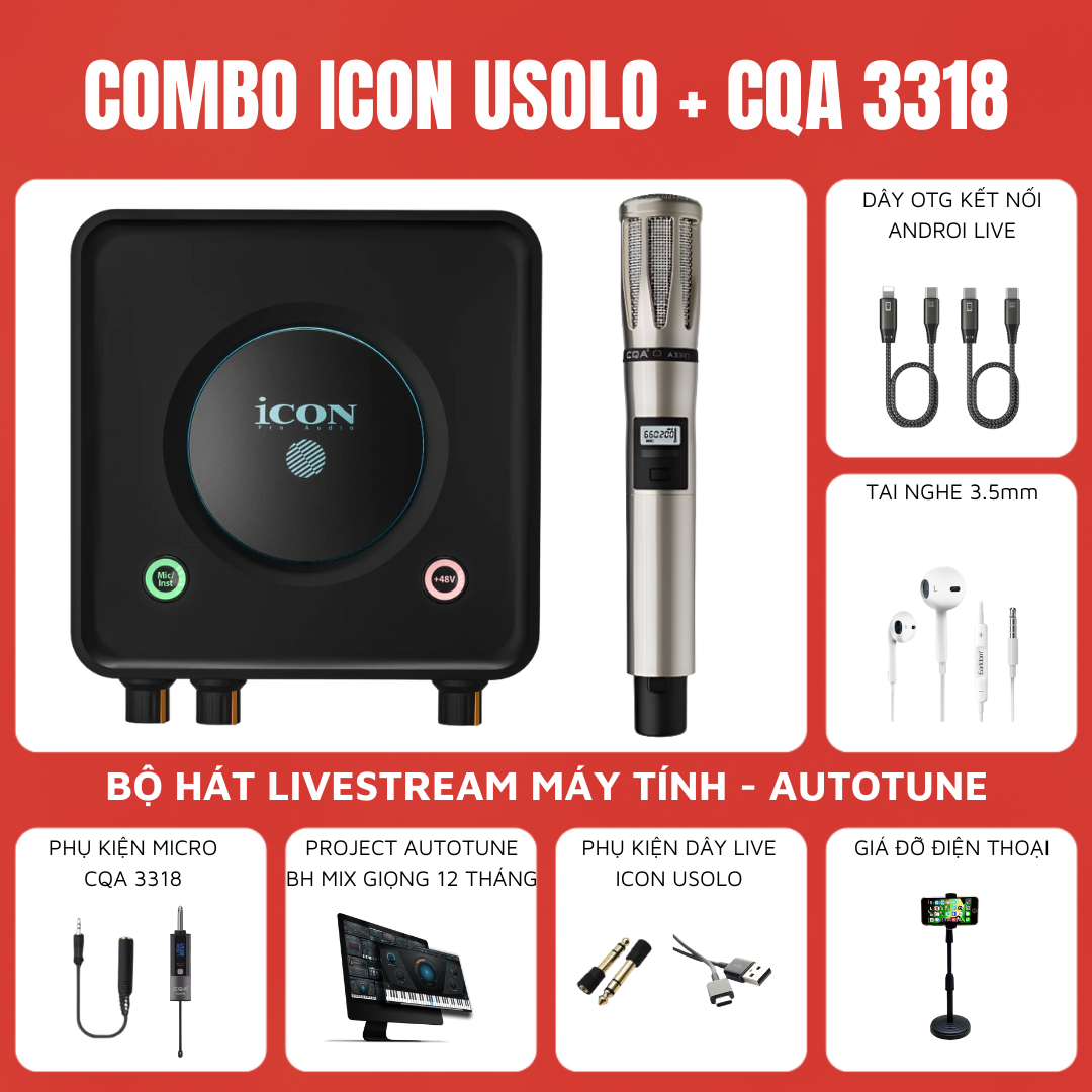 Bộ livestream Icon Usolo - Micro thu âm CQA 3318