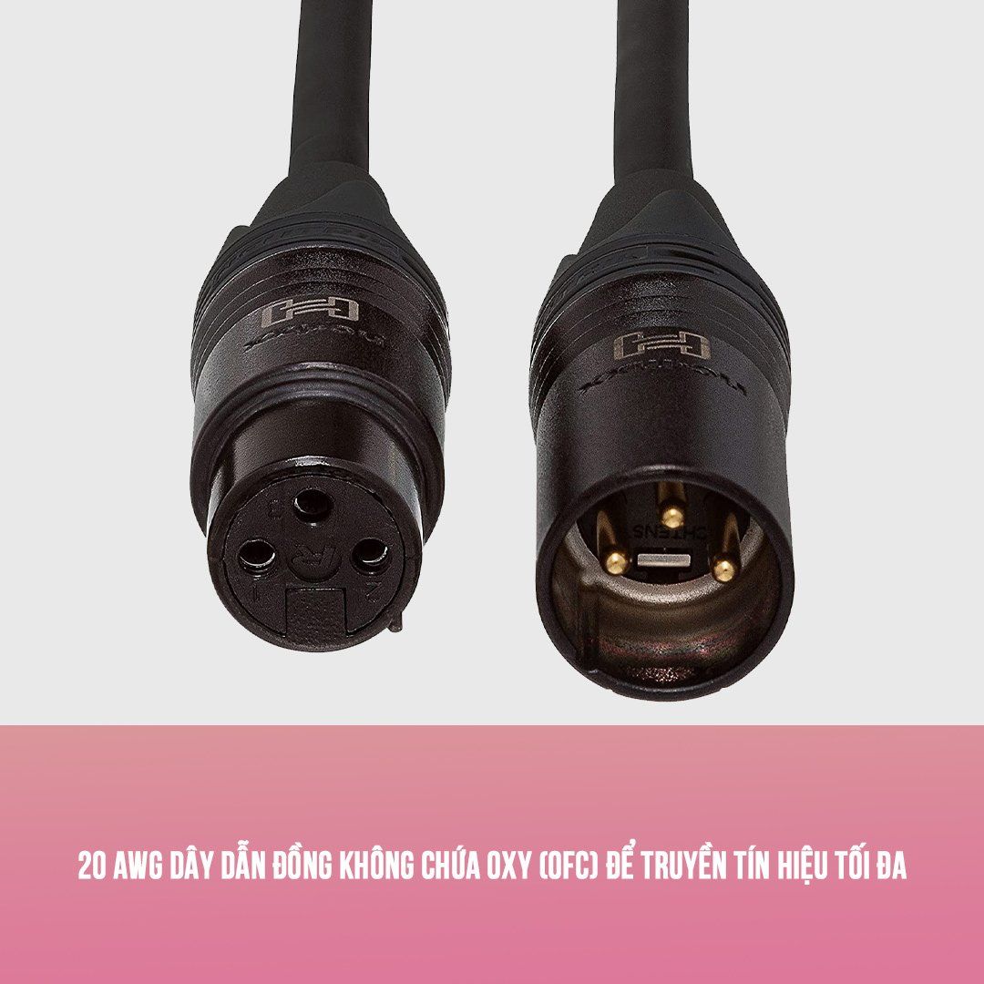 Ngoài đặc tính là đầu kết nối Neutrik, lõi dây với 20 dây dẫn bằng đồng không chứa oxy là nguyên nhân giúp sản phẩm có khả năng truyền tải tín hiệu ấn tượng. Độ trễ khi truyền tín hiệu đối với sản phẩm gần như bằng không, độ nhiễu và rẽ cũng được loại bỏ triệt để. Ngoài ra, sản phẩm cũng có mức điện dung khá thấp, điều này giúp các âm thanh có tần số cao cũng dễ dàng được truyền tải. Sản phẩm không chỉ được sử dụng trong các phòng thu chuyên nghiệp mà kể cả các buổi biểu diễn ngoài trời cũng phù hợp để lựa chọn dây cáp micro này từ Hosa.