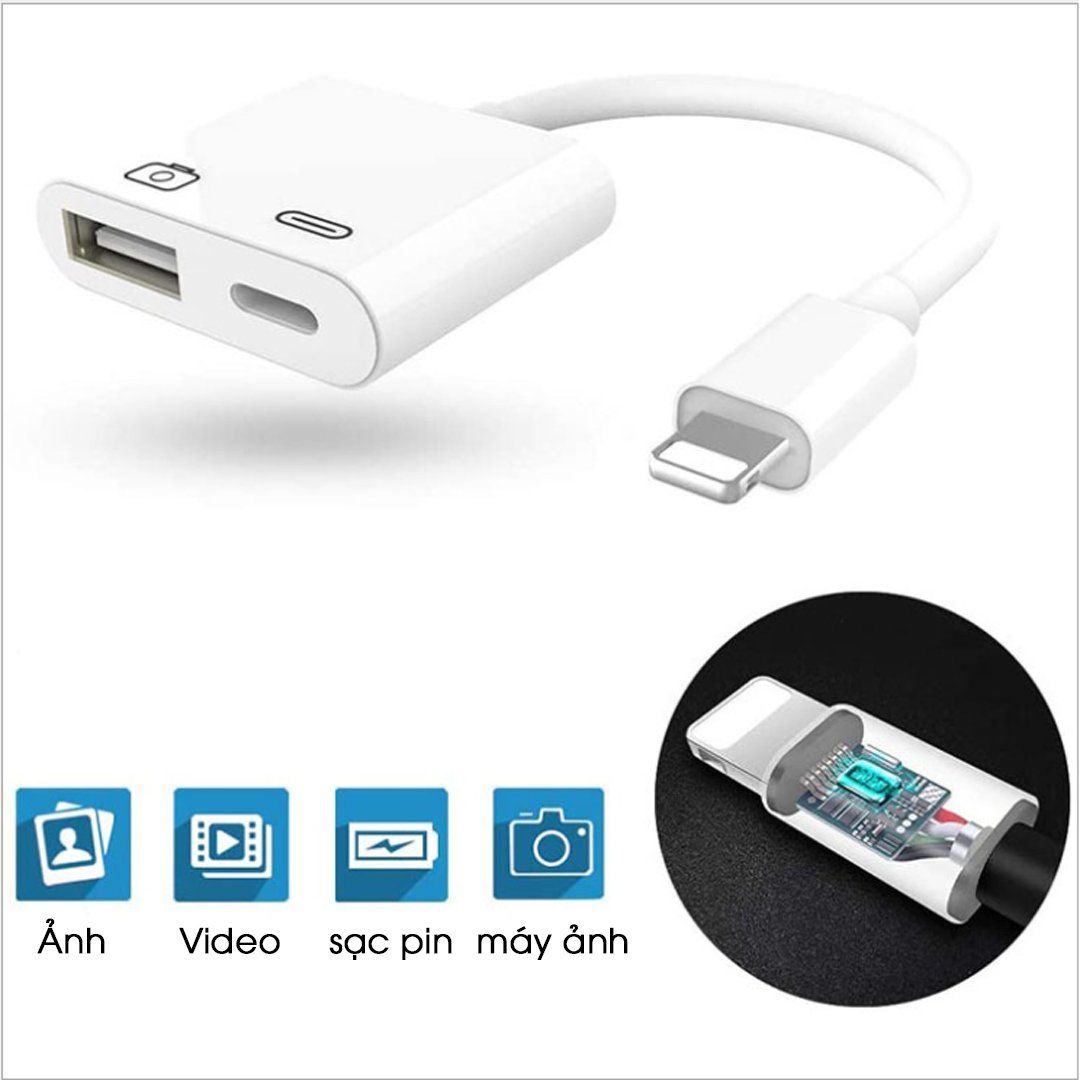 Cap OTG Chuyển Đổi Lightning Sang USB OTG CAMERA Kèm lỗ sạc Pin