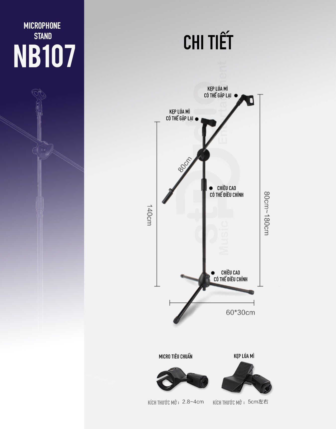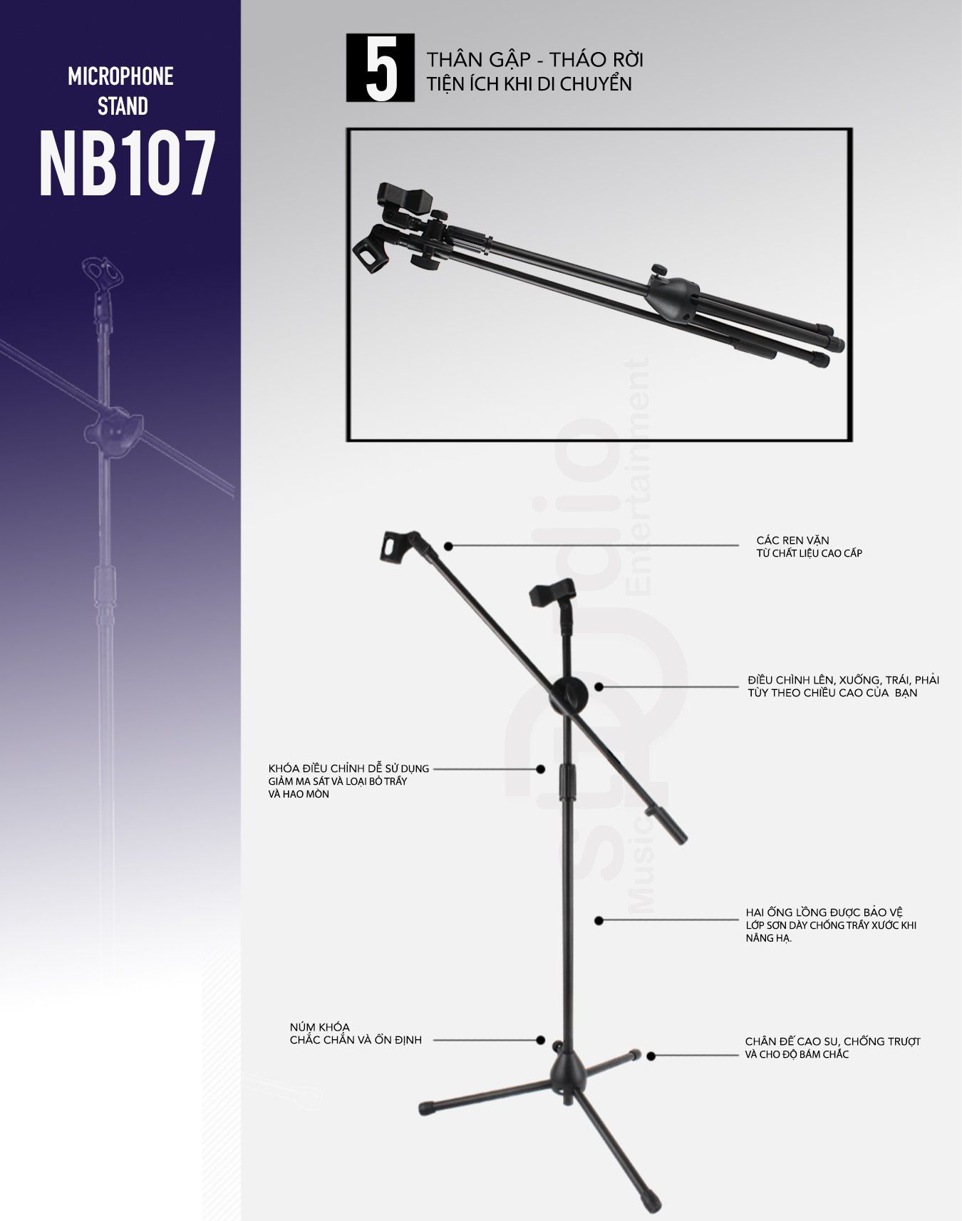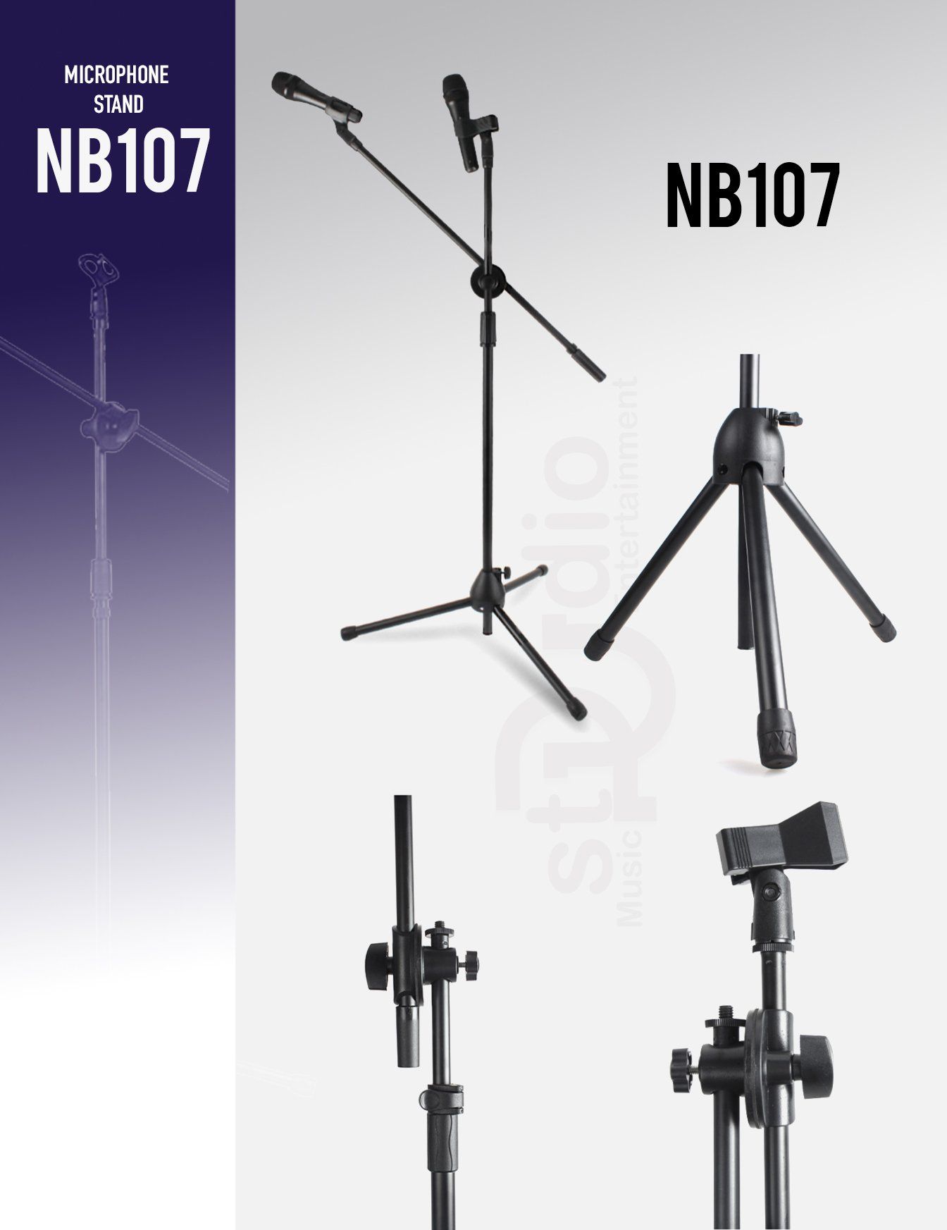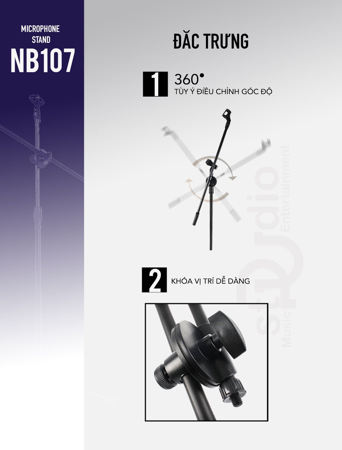 Chân đế microphone, giá đỡ micro thu âm đứng NB107 là một sản phẩm tiện lợi. Được sử dụng hầu hết tại các phòng thu âm chuyên nghiệp. Là một phụ kiện không thể thiếu cho Micro thu âm của dàn âm thanh thu âm hát livestream tại nhà của bạn. Giúp tiện lợi trong việc treo Microphone, đỡ Micro, chống rung cho Micro thu âm tốt nhất. Sản phẩm chân đứng Stand Microphone là sự lựa chọn tốt cho bộ livestream tại nhà của bạn.