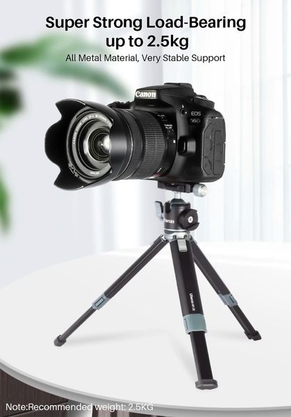 Chân tripod được làm từ chất liệu hợp kim nhôm cao cấp, có độ bền cao và khả năng chịu tải tốt. Chân tripod có thể chịu tải tối đa lên đến 3kg, phù hợp với nhiều loại máy ảnh, điện thoại khác nhau. Điều này giúp cho các vlogger và youtuber có thể sử dụng chân tripod với nhiều thiết bị khác nhau mà không cần phải lo lắng về khả năng chịu tải của sản phẩm.