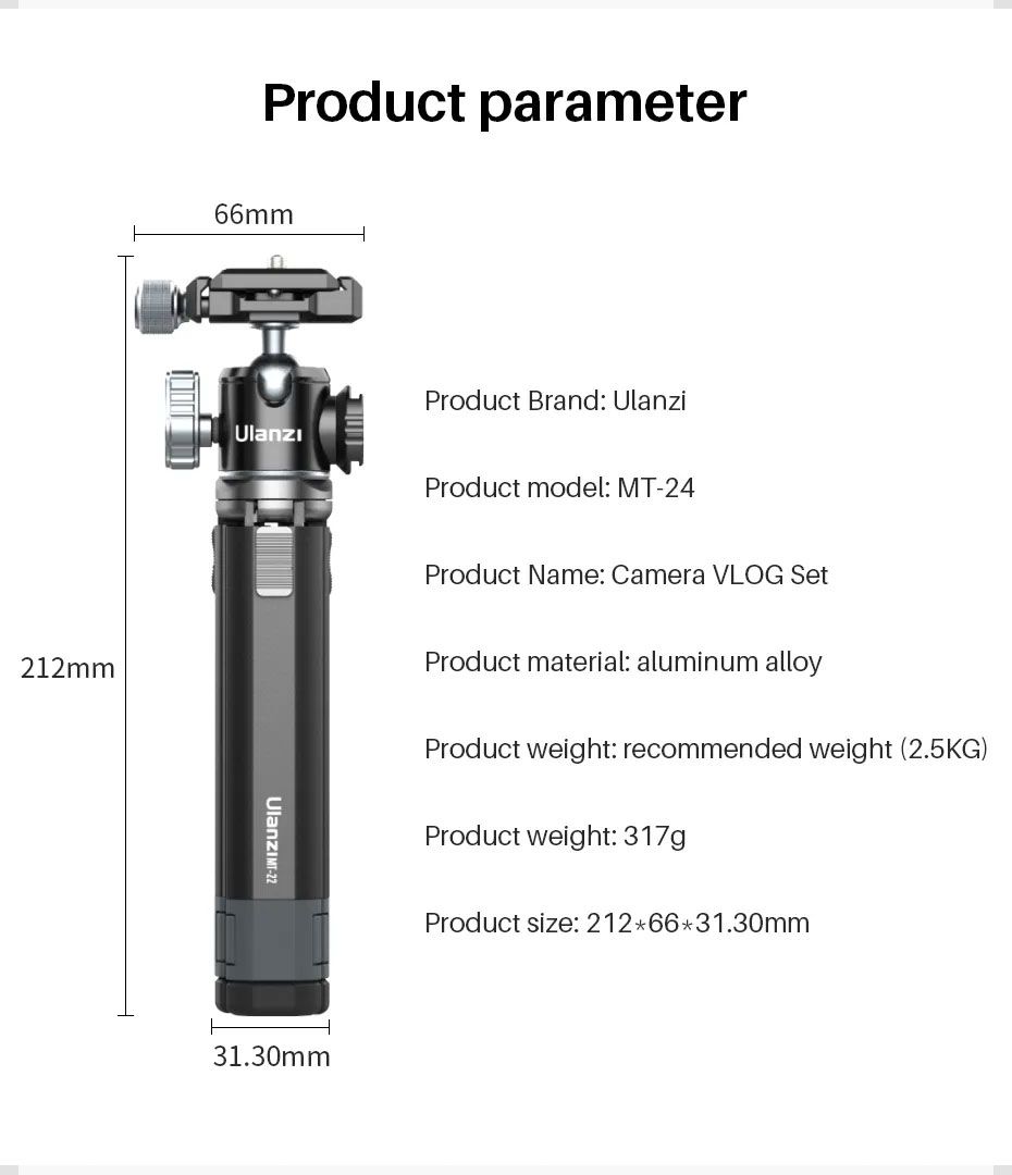 Chân Tripod Ulanzi MT-24 Camera Vlog Set metal tabletop là một sản phẩm mới ra mắt của thương hiệu Ulanzi, nổi tiếng với các sản phẩm phụ kiện máy ảnh, điện thoại chất lượng cao. Chân tripod này được thiết kế dành riêng cho các vlogger, youtuber, giúp họ có thể dễ dàng quay dựng video chất lượng cao.