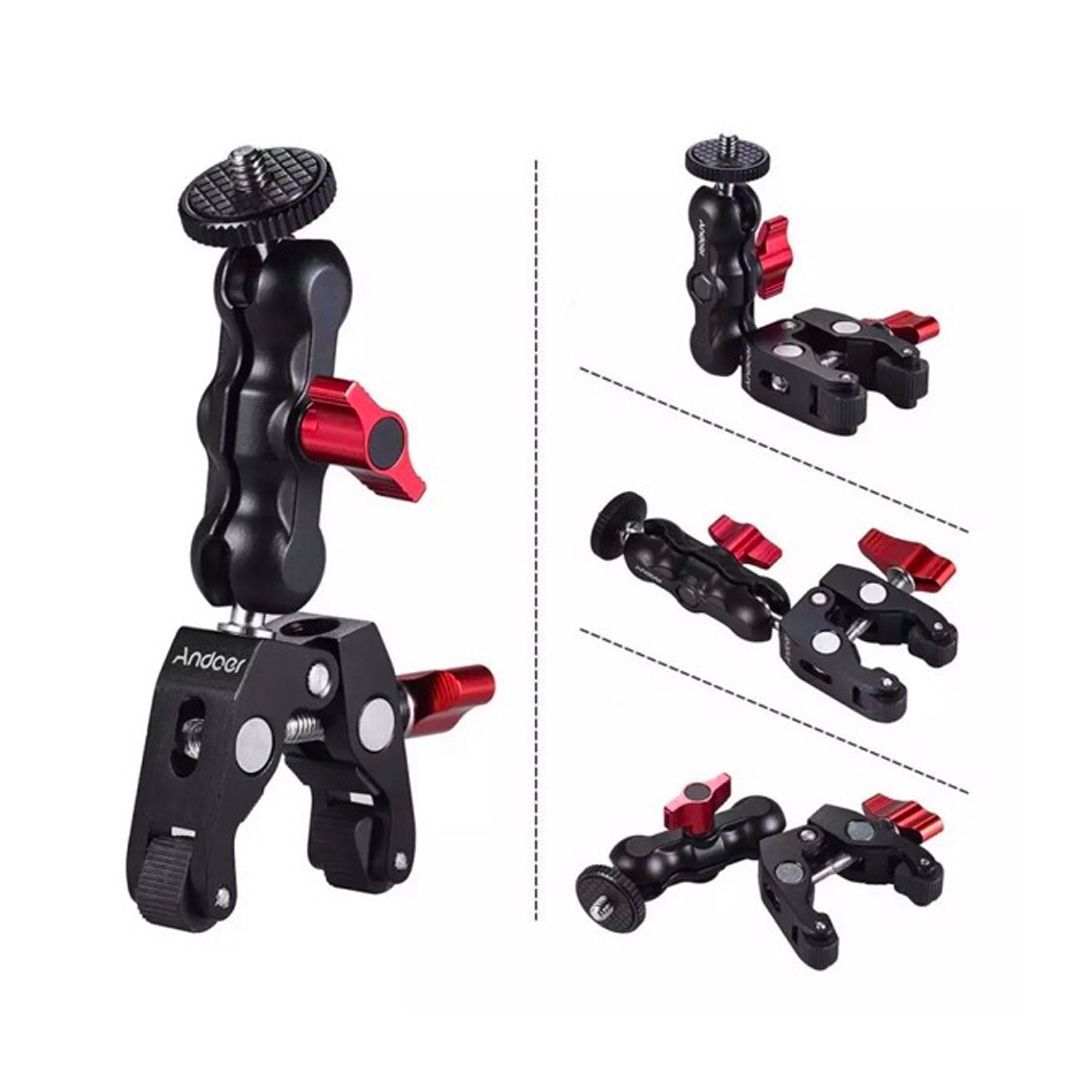 - Chất liệu: Chiếc siêu kẹp Andoer này được làm từ kim loại thép không gỉ chống gỉ chắc chắn và hợp kim nhôm đen nhôm định hình cho độ bền cao. Cao su chống trượt ở mặt trong mang lại sức mạnh và sự ổn định.