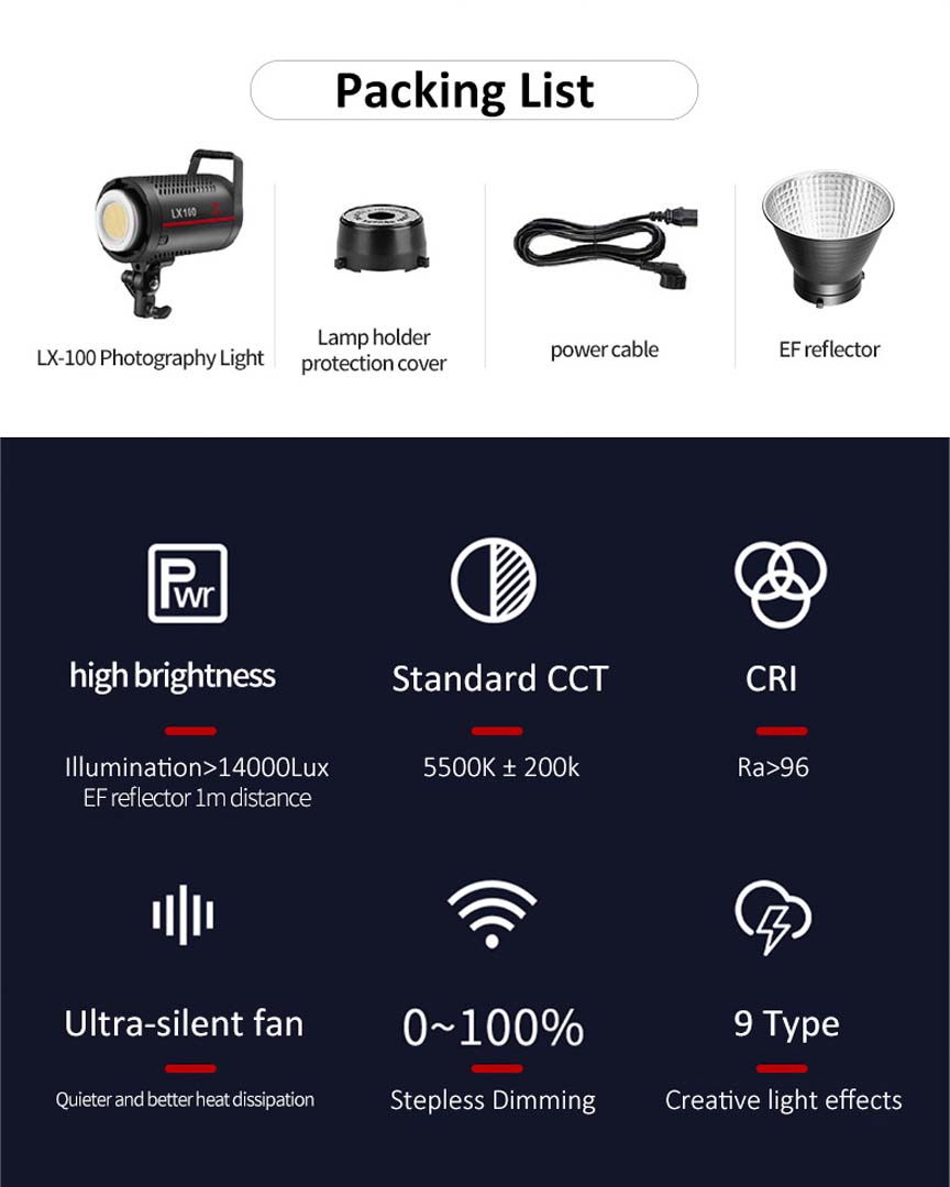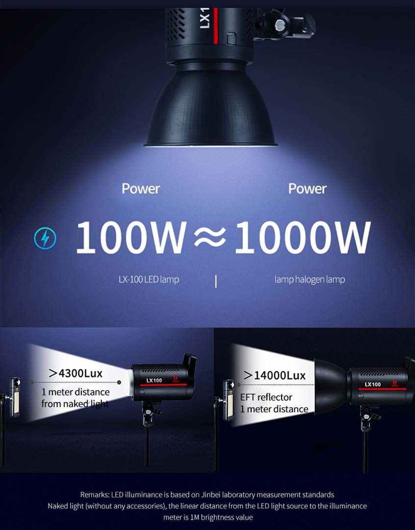 Đèn Led Jinbei LX-100 có khả năng tạo ra nguồn sáng chất lượng cao và có thể điều chỉnh độ sáng và nhiệt độ màu để đáp ứng các yêu cầu khác nhau trong quá trình chụp ảnh studio. Đèn có thể được sử dụng với các loại softbox và bộ lọc khác nhau để tạo ra hiệu ứng ánh sáng đa dạng.