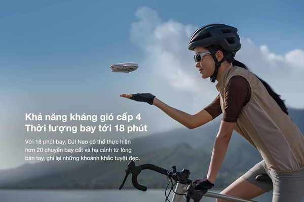 Với thời gian bay 18 phút, DJI Neo có thể thực hiện hơn 20 chuyến bay cất và hạ cánh, đi từ lòng bàn tay của bạn bay lên bầu trời, ghi lại những khoảnh khắc tuyệt đẹp của cuộc sống. Cùng với đó là thiết kế tinh tế và siêu nhỏ gọn cũng giúp chiếc máy bay không người lái này tiết kiệm thời gian bay một cách đáng kể.