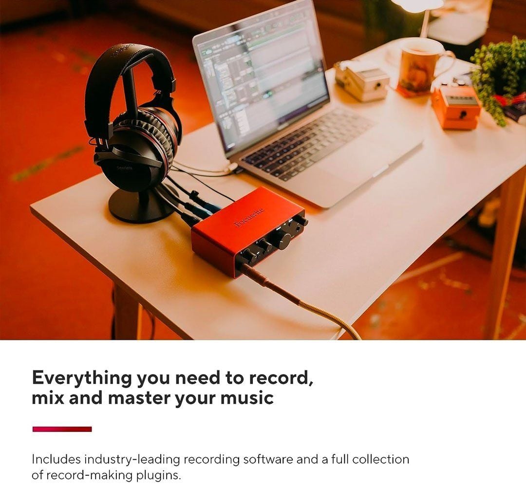 Scarlett Solo 4rd (Gen) đi kèm với nhiều phần mềm và plugin hữu ích như Ableton Live Lite, Pro Tools First, và các plugin hiệu ứng âm thanh từ Focusrite. Điều này giúp bạn bắt đầu sản xuất âm nhạc ngay lập tức mà không cần đầu tư thêm.