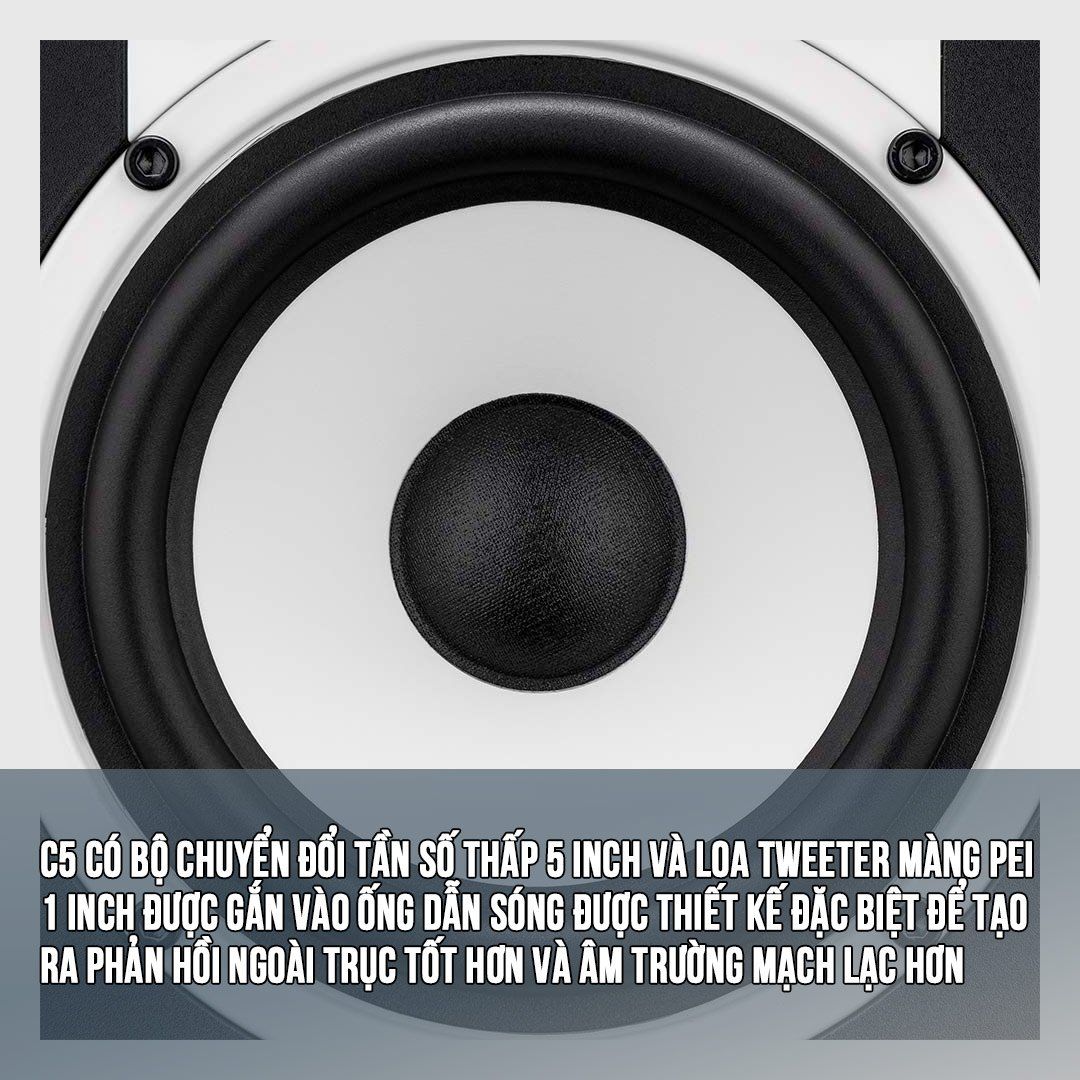 Âm thanh được xử lý qua loa kiểm âm Fluid Audio C5 Active Studio Monitors (Pair)-White có chất lượng tốt vì thiết bị có bộ chuyển đổi tần số thấp 5 inch. Sản phẩm này còn có loa Tweeter màng PIE 1 inch được gắn trực tiếp vào ống dẫn sóng. Tất cả làm nên chất lượng tuyệt vời cho sản phẩm này