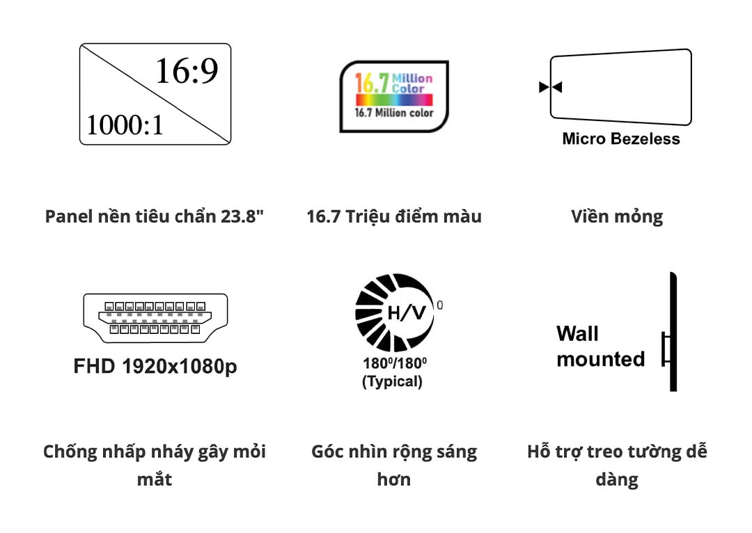 | Cổng kết nối | HDMI x1 / VGA x1/ SPK 8Ω 1W |
