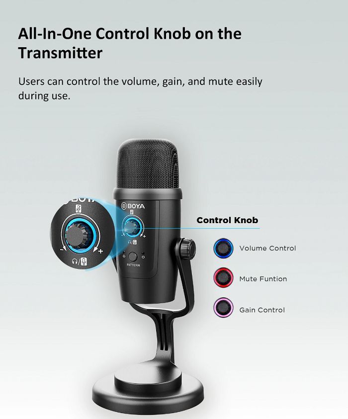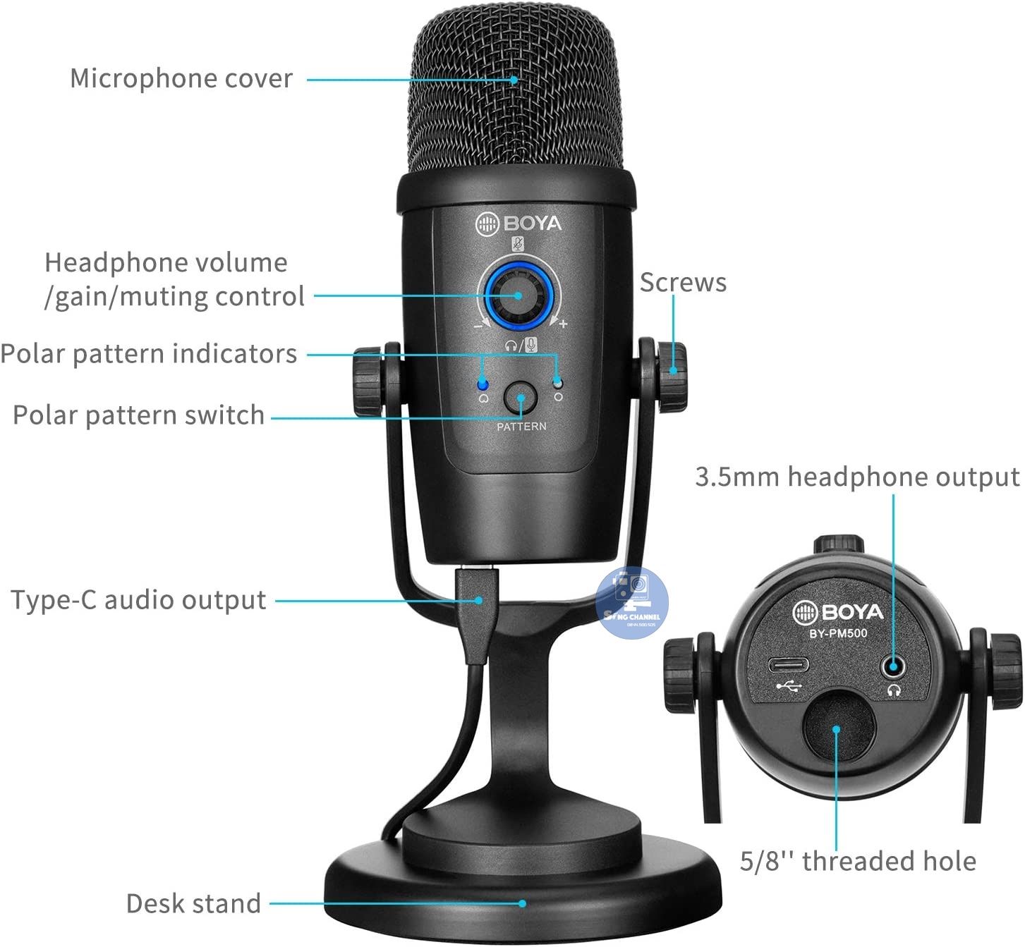 Micro thu âm BOYA BY-PM500 là một micro condenser đa hướng cổng USB, có khả năng ghi âm âm thanh chất lượng cao từ nhiều hướng khác nhau. Dưới đây là một số điểm nổi bật về sản phẩm này: