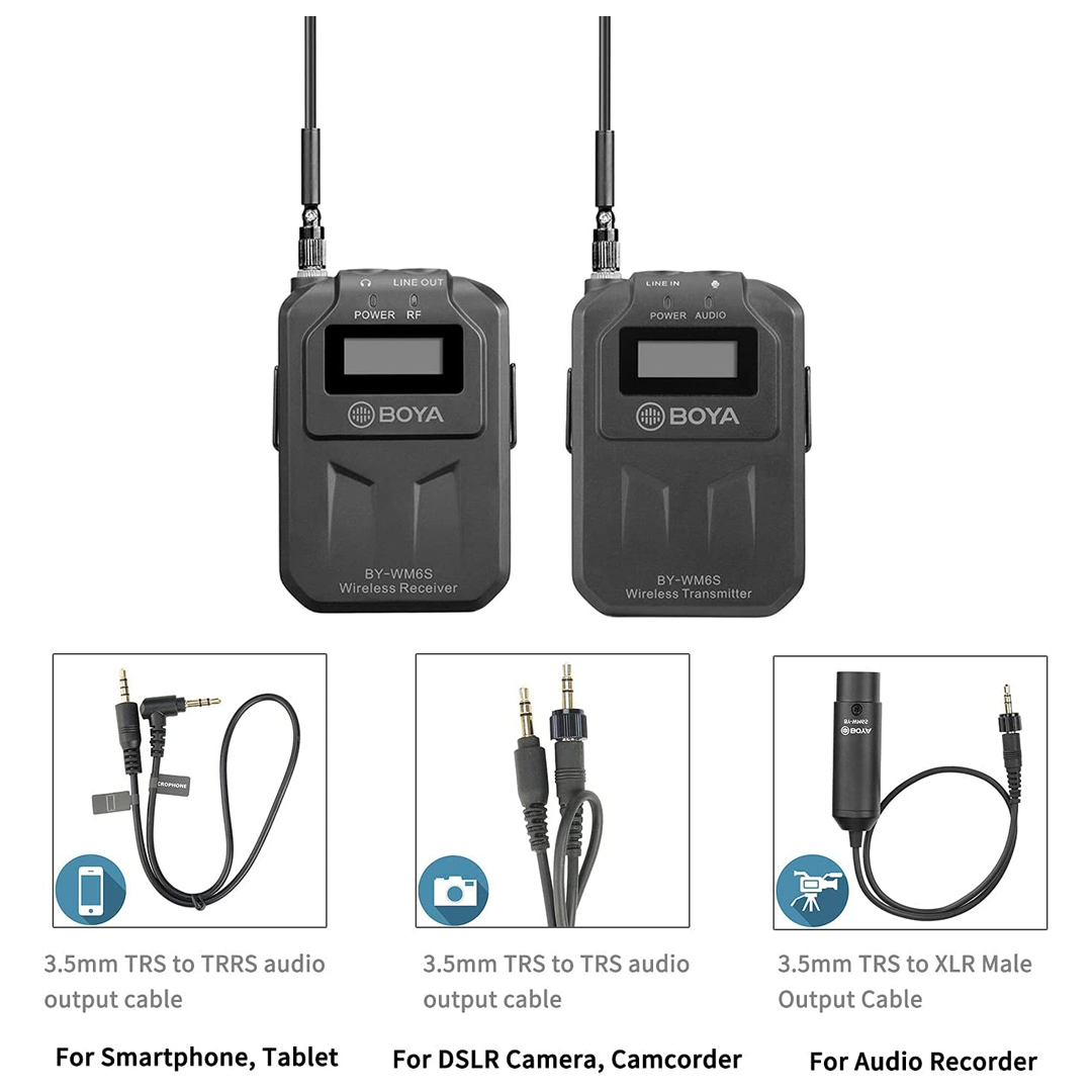 Đúng với tính linh hoạt của sản phẩm, Boya BY-WM6S có khả năng tương thích với nhiều loại máy thu âm khác nhau. Tuy nhiên, bạn cần kiểm tra kỹ thông số kỹ thuật để đảm bảo rằng sản phẩm của bạn có thể hoạt động tốt với Boya BY-WM6S.