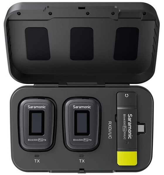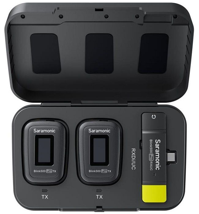 Ngoài các thành phần chính là 2 TX, 1 RX, hộp sạc, bộ micro cài áo không dây Blink 500 Pro B6 được Saramonic trang bị full phụ kiện bao gồm:
