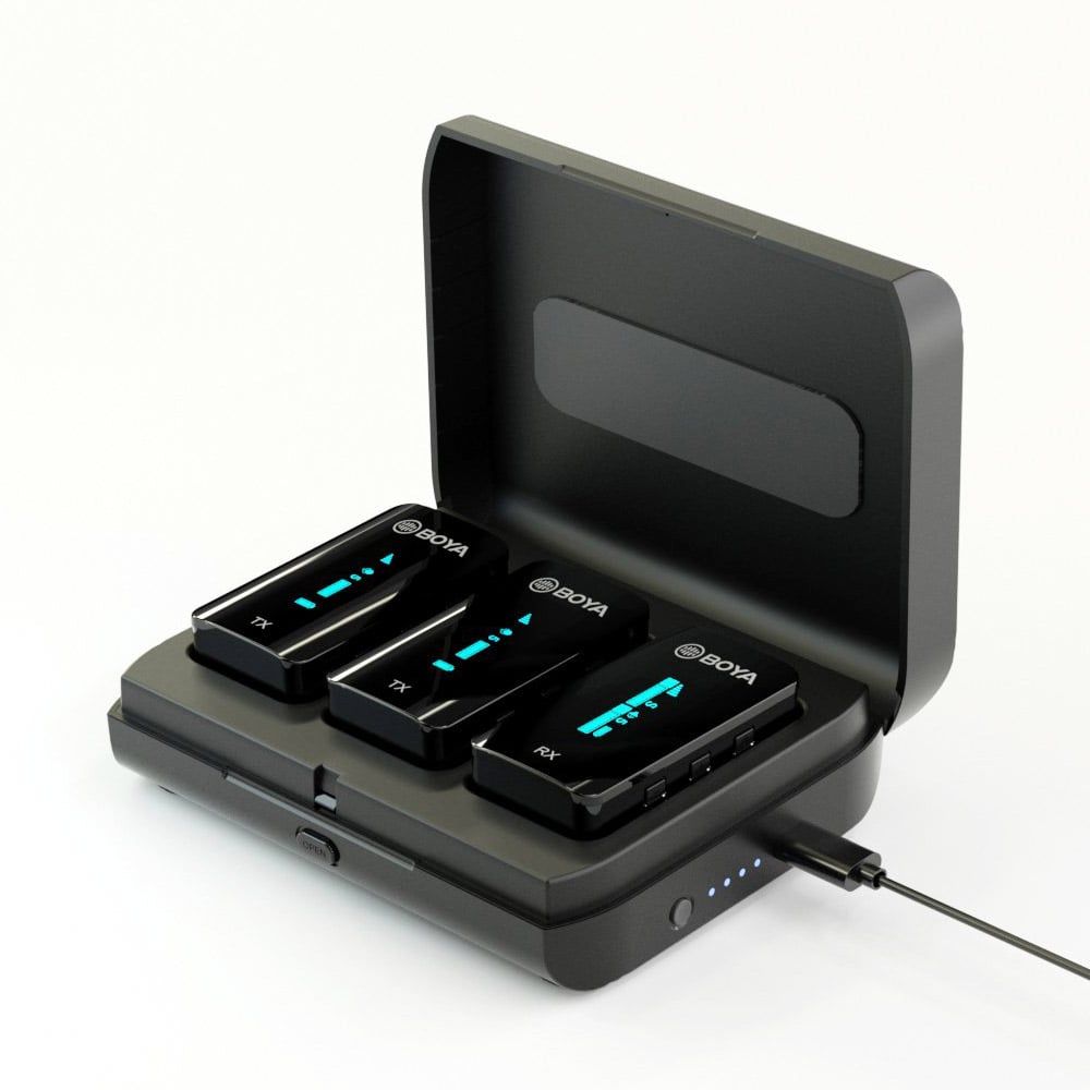 TX và RX sở hữu ngoại hình bắt mắt từ thiết kế khối hộp kết hợp cùng màu sơn đen tuyền bóng bẩy, tạo cho BY-XM6 K2 một chất gì đó rất nam tính. Điểm nhấn còn tới từ BOX bảo quản (cũng chính là bộ sạc tích hợp pin dự phòng), với 3 slot quick charge giảm thời gian sạc đầy pin xuống chỉ còn 2 giờ. Nếu chỉ ghi âm đơn kênh, BOYA BY-XM6 K2 cho phép bạn thực hiện những buổi ghi liên tục 20 giờ mà không lo gián đoạn.