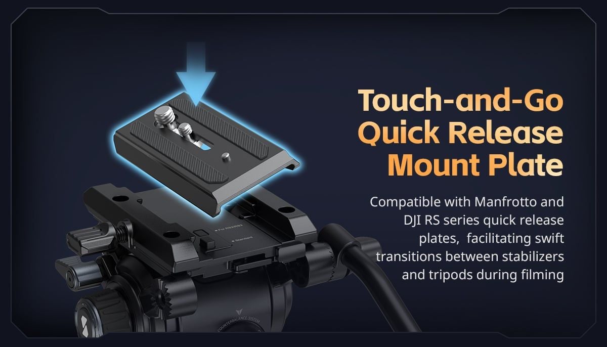TRIBEX Tripod sở hữu đầu chân máy linh hoạt với khả năng xoay và nghiêng mượt mà, mang đến chất lượng quay phim đạt chuẩn điện ảnh. Đặc biệt, hệ thống điều chỉnh lực kéo cho phép bạn dễ dàng kiểm soát góc quay, tạo ra những cảnh quay ổn định, sắc nét, phù hợp với nhiều phong cách chụp từ chuyển động nhanh đến cảnh tĩnh.