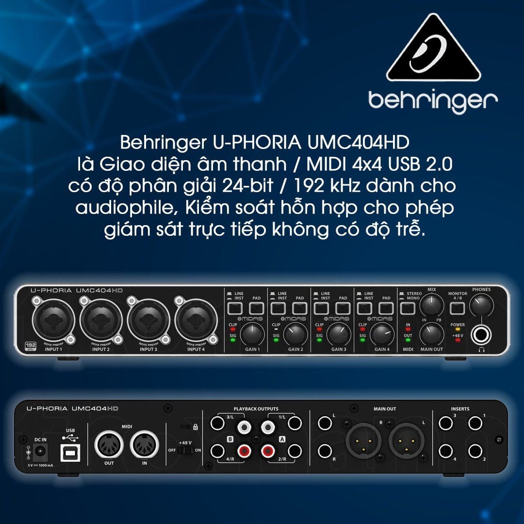 Hiện nay trên thị trường có nhiều dòng Sound Card dành cho các buổi thu âm, luyện giọng cho nhiều người có đam mê về âm nhạc, lồng tiếng,... Và trong đó phòng thu Behringer chuyên cung cấp các buổi thu âm chất lượng cao, đặc biệt chính là Sound Card Behringer UMC404HD sản phẩm được mong đợi ngay từ khi được Behringer giới thiệu và cho ra mắt trong phòng thu. Bài viết dưới đây sẽ giúp bạn tìm hiểu sản phẩm thu âm của Behringer.