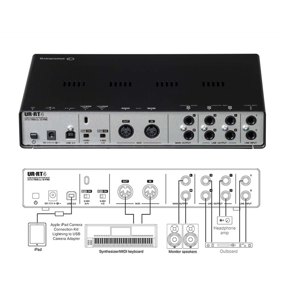 STEINBERG UR-RT4 được trang bị nhiều cổng kết nối như USB 2.0, MIDI In/Out, cùng với các cổng đầu ra Line Output, đảm bảo khả năng kết nối linh hoạt với các thiết bị âm thanh khác. Sound card này cũng tương thích với nhiều phần mềm DAW phổ biến như Cubase, Nuendo, và các phần mềm thu âm khác, giúp quá trình thu âm trở nên dễ dàng và hiệu quả hơn.