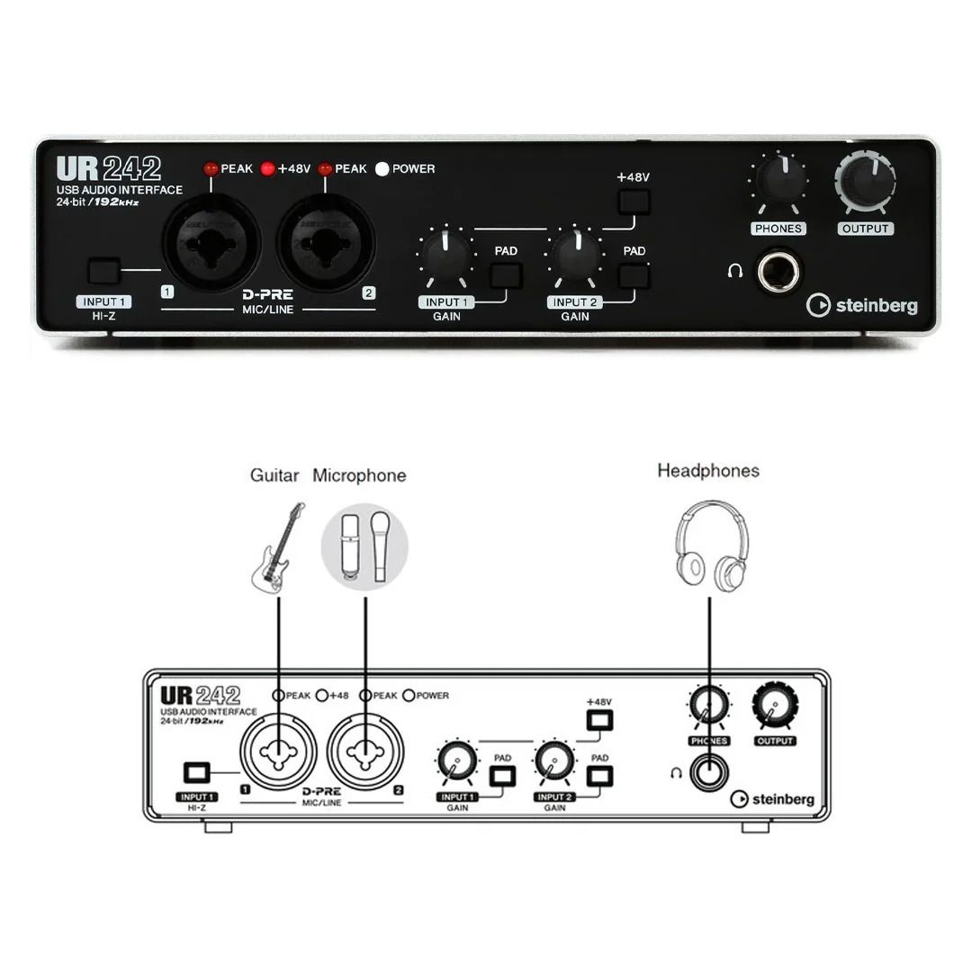 Các công nghệ cải tiến âm thanh đầu vào được Steinberg lồng ghép vào một cách tinh tế như việc trang bị thêm tính năng DSP FX manager trong bộ điều khiển CUBASE AI giúp cho âm thanh khi vào sẽ được giảm sát và tinh chỉnh lại, loại bỏ nhiễu và trễ tiếng. Hơn thế nữa, Steinberg UR242 còn tương thích với nhiều loại phần mềm chỉnh sửa hỗ trợ chuẩn ASIO, Core Audio hay WDM. Thiết bị còn được trang bị thêm cả cổng MIDI-in và MIDI-out để kết nối với các nhạc cụ điện tử hay nhạc cụ của Yamaha một cách dễ dàng mà không cần đi qua bên thứ ba nào. Hơn nữa, UR242 còn hỗ trợ thêm cả chức năng phát trực tuyến bằng việc trộn nhạc và vocal trực tiếp vào đường line out.