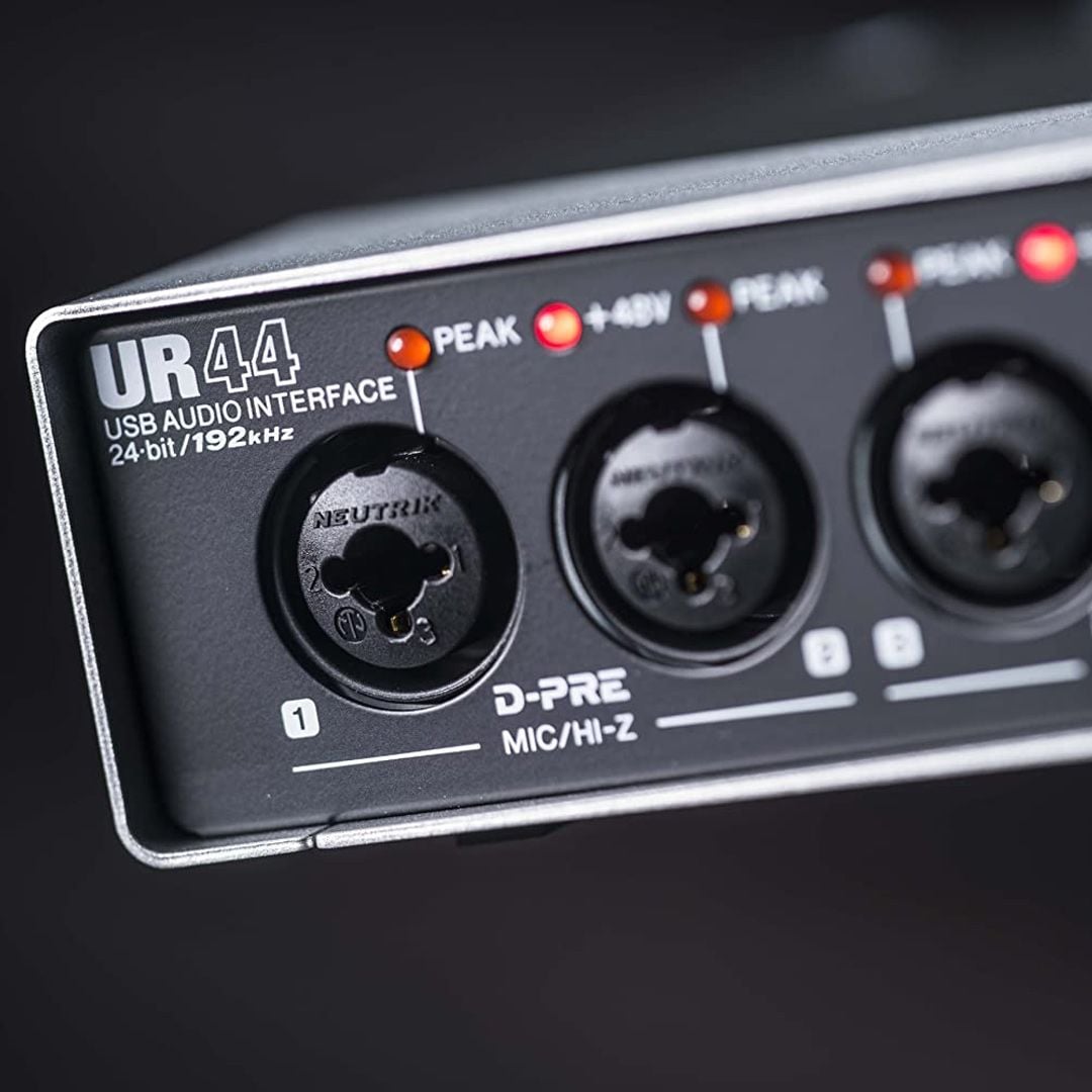 UR44 được trang bị 2 mic preamp chất lượng studio với độ trung thực cao. Bạn có thể kết nối 2 mic cùng lúc để thu âm. Hai mic preamp này giúp củng cố chất âm, tạo ra âm thanh sắc nét, sinh động, giống như thu trực tiếp trong phòng thu.