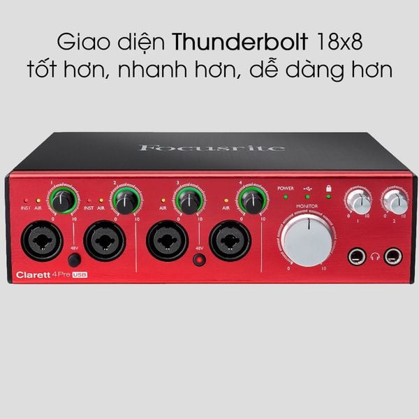 Sản phẩm Focusrite Clarett 4Pre USB có bộ xử lý thông tin lên tới 24bit / 192 kHz. Đây là con số khá khủng đối với một sound card thu âm chỉ với giá tiền dưới 20 triệu VND.