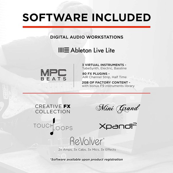 Phần mềm đi kèm bao gồm Pro Tools First và Eleven Lite, cung cấp công cụ chỉnh sửa và xử lý âm thanh chuyên nghiệp.