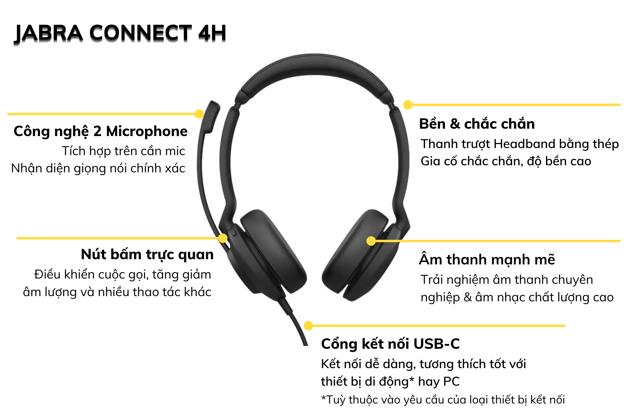 Với công nghệ 2 micrô (1 Analog MEMS and 1 Analog ECM), tai nghe Jabra Connect 4h đảm bảo âm thanh truyền đến và truyền đi luôn to và rõ ràng, từ đây kết quả công việc của bạn sẽ được đảm bảo. Đây cũng chính là lý do thu hút người dùng đến với sản phẩm này. Đặc biệt, chiếc tai nghe này còn có nút bấm trực quan giúp điều khiển mọi cuộc gọi, hỗ trợ tăng giảm âm lượng và thực hiện nhiều thao tác khác trên tai nghe. Khi bàn về độ bền và chắc chắn của tai nghe thì những khách hàng trước đó đều chấm điểm 10 tròn trĩnh, từ đây cũng có thể thấy được chất lượng của sản phẩm được nhà sản xuất vô cùng chú trọng. Vậy còn chần chừ gì nữa mà không sắm ngay cho mình một chiếc Tai Nghe Jabra Connect 4h - Tai nghe chụp tai có mic để phục vụ công việc cũng như giải trí cho bản thân ngay hôm nay.