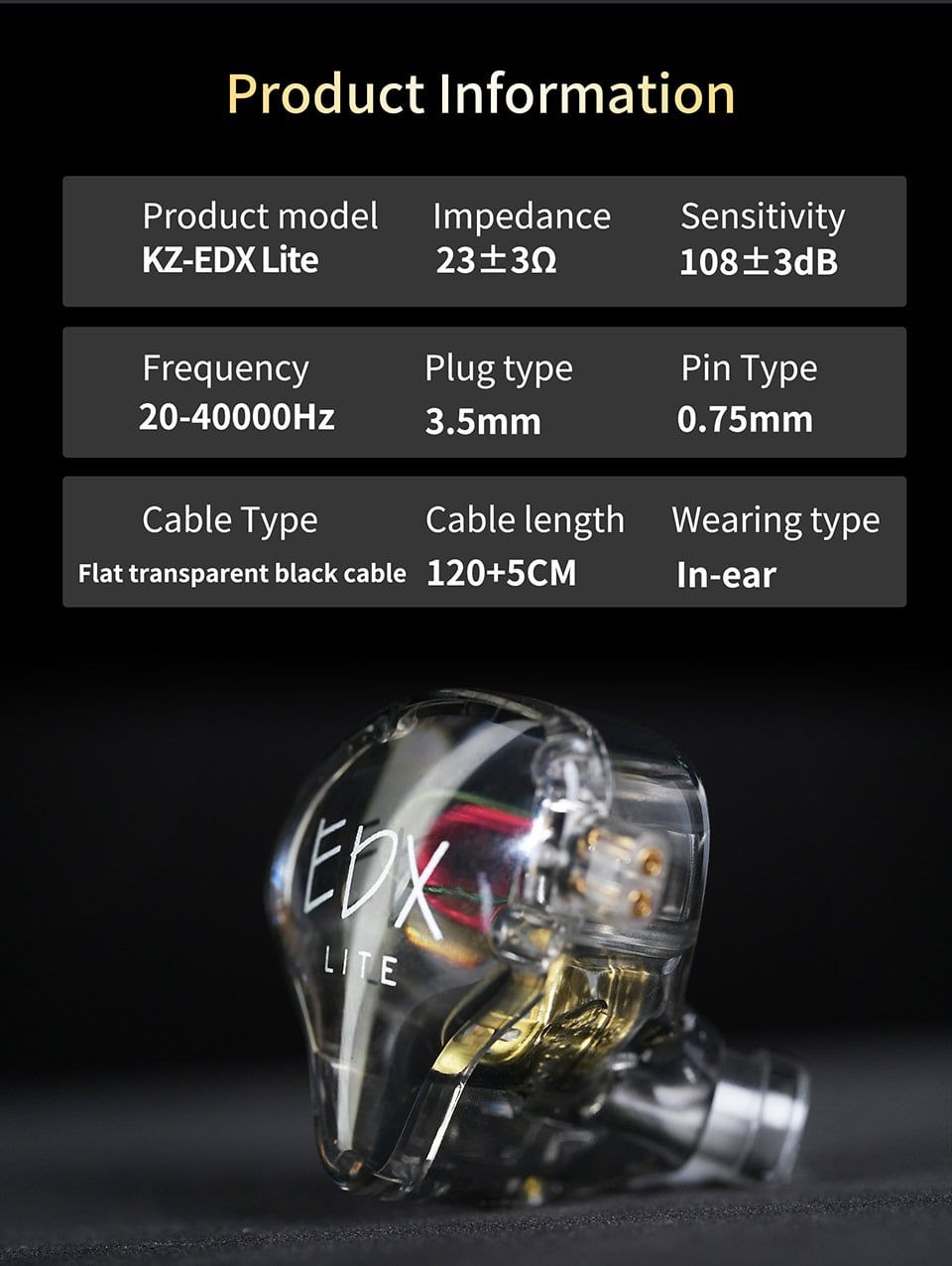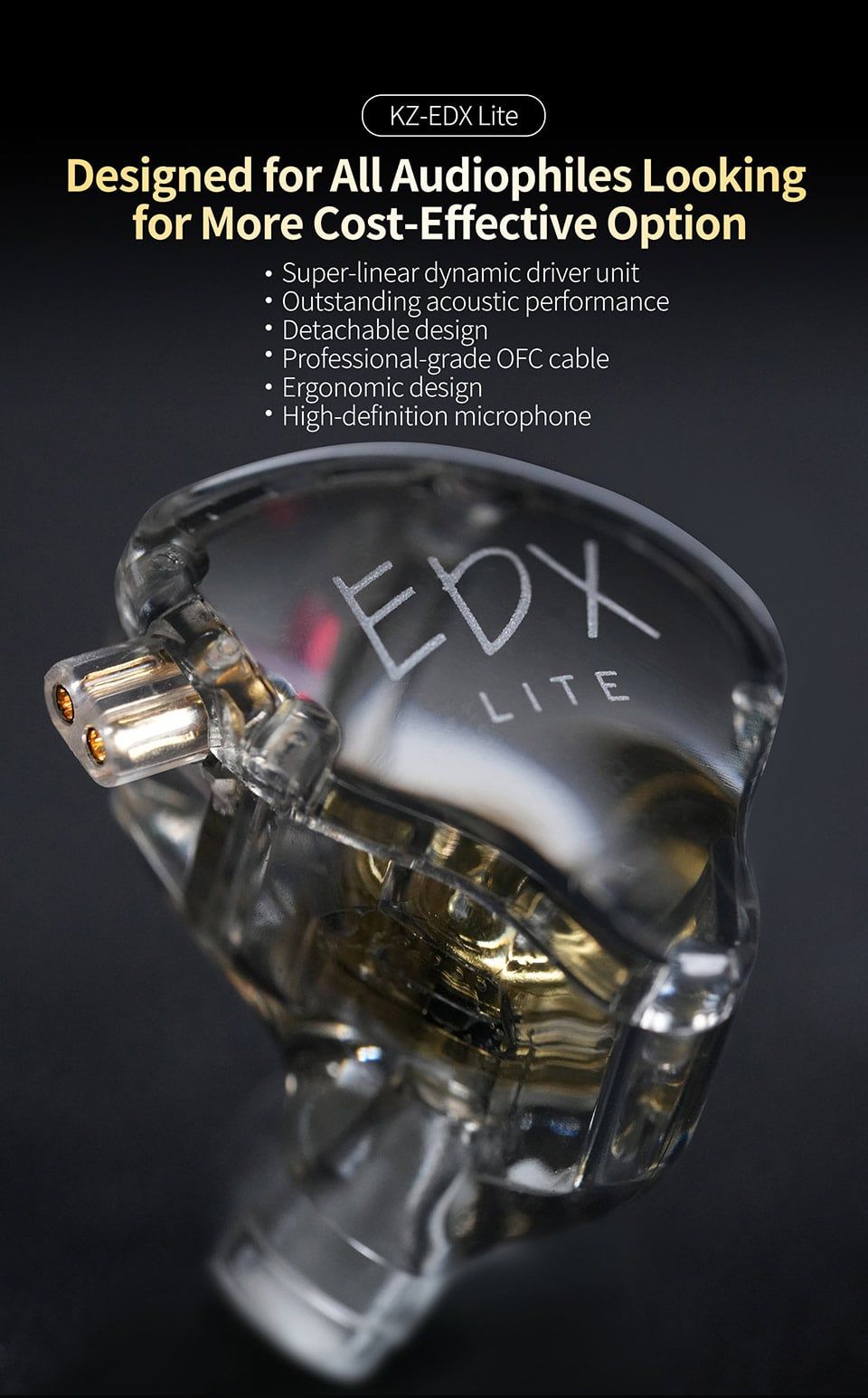 Tai nghe KZ-EDX Lite trong suốt Tai nghe nhét tai livestream ( In ear ) Clear